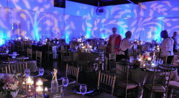 Transforming a dingy plain rental venue into a magical experience requires the use of very creative lighting. Decorative event lighting services are a real passion of ours and we’ve come to realize that we have a legitimate talent for this. Clients say things like, “Genius”, “Stunning” and “I can;t stop looking at it” or ” you blew my mind”. We have a huge inventory of state-of-the-art battery powered, cordless, wirelessly controlled LED lights that allow us to paint your room and light ever focal point quickly and effectively without having to run a single cable. Then we add texture, shape and content using gobos and leko lighting fixtures. These include breakup patterns, theme images, foliage and shapes and even your company logo. We have ideas to contribute if you are open minded and are constantly trying to outdo our own creations from the past.